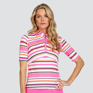 Tail Ladies Golf Colette Elbow Sleeve Polo- Sherbert Stripe